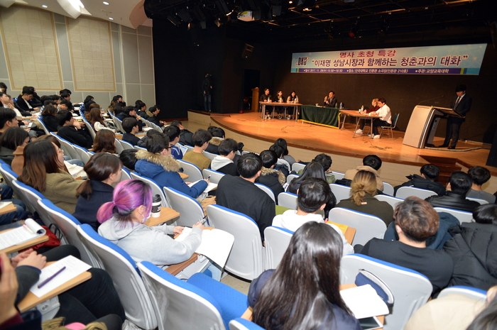 강연 이후 학생들은 이재명 시장에게 미래 먹거리 산업, 성평등, 최저임금 등을 주제로 날카로운 질문을 던지기도 했다.